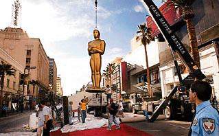 奧斯卡明星貴比大熊貓 圍觀居然也要被捕(圖) 2002年03月23日 17:15 ![]() 工作人員把一座巨型奧斯卡像置于會(huì)場(chǎng)入口。(法新社) 中新網(wǎng)北京3月23日消息:出席本屆奧斯卡金像獎(jiǎng)?lì)C獎(jiǎng)典禮的電影明星,將不會(huì)像往年一樣受到大批群眾的喝釆,因?yàn)楫?dāng)局基于保安理由禁止公眾在會(huì)場(chǎng)入口聚集。 香港文匯報(bào)援引英國(guó)《每日電訊報(bào)》的消息稱,由于擔(dān)心會(huì)發(fā)生恐怖襲擊,警方封鎖了好萊塢市中心的十五個(gè)街區(qū),并發(fā)出警告,表示未經(jīng)許可來(lái)看明星的人會(huì)被拘捕。當(dāng)局的禁令和措施,使好萊塢為今屆盛事起了個(gè)花名,叫做“沉默的奧斯卡”。按傳統(tǒng),每年都有超過(guò)一千人聚集于會(huì)場(chǎng)入口,觀看明星的風(fēng)釆,甚至有些人提早數(shù)天就在入口處露宿,以占有利的位置。 今年,五百名預(yù)先提出申請(qǐng)的人士,需要填寫(xiě)保安表格,并經(jīng)過(guò)大會(huì)聘請(qǐng)的私家保安人員的背景檢查。約三百人獲得批準(zhǔn),將會(huì)坐在距離入口五十碼的特制看臺(tái)上。會(huì)場(chǎng)外半英里內(nèi)的交通亦已被禁止,該區(qū)的地鐵站停開(kāi),劇院周圍三個(gè)街區(qū)的商店已被下令在頒獎(jiǎng)禮舉行前三天關(guān)門。