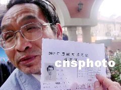 圖:國家司法考試對作弊者將終身禁考 2002年03月30日 18:34 ![]() 3月30日,備受關(guān)注的首次國家統(tǒng)一司法考試開考。一位52歲的上海孫姓老年考生進場時亮出準考證。據(jù)了解,這將是法律專科學(xué)歷者的最后一次機會,從明年開始,報考國家司法考試,必須有大學(xué)本科以上學(xué)歷,所以此次報名者中,法律?茖W(xué)歷的報考者遠遠超過其他學(xué)歷者。為此,司法部新近頒布的《國家司法考試違紀行為處理辦法》(試行)規(guī)定,在這次考試中有嚴重作弊行為者,將終身不得再參加考試。中新社圖 李江松 攝