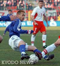 中田--孤獨清高的日本王牌經(jīng)受磨練不斷成長 2002年04月01日 08:40 ![]() 中田英壽在日本隊與波蘭隊比賽的上半場進(jìn)球前努力拼搶(共同社) 中新網(wǎng)北京4月1日消息:“經(jīng)歷過痛苦的時期以后,人的實力就會增強!痹谝饧着翣栺R隊極少得到出場機會的中田英壽,今年年初曾經(jīng)這樣回答意大利報紙的采訪。在日本隊?wèi)?zhàn)勝波蘭隊的比賽中,日本的王牌球員證明了這句話,這也把世界杯前日益膨脹的“對中田的不安”的擔(dān)憂一掃而空。 據(jù)“共同社”報道,上半場第10分鐘,中田乘對方后衛(wèi)失誤,迅速插入接右路市川橫傳后拔腳怒射。對于首開紀(jì)錄的這個進(jìn)球,中田英壽說:“我正好截得皮球,接著就只是大力射門。”在客場比賽而且場地條件不好的情況下,他的進(jìn)球在開場階段就給日本隊帶來了掌握這場艱難的比賽的主導(dǎo)權(quán)。 他積極地同對方球員進(jìn)行拼搶,給對方造成了很大壓力。不斷地給右路的市川等人傳出好球,作為中場核心不停跑動,滿場飛奔。他對本隊球員的指揮也很突出,場上經(jīng)常出現(xiàn)他迫不及待地用嚴(yán)厲口吻呼應(yīng)福西和戶田接球的場面。他還建議小野“帶球時,要有甩開對方阻截隊員的方法”。 一直以“他還沒有通過我的考驗”,“他不是鐵定的主力”等話語充當(dāng)給中田英壽增加危機感的角色的主教練特魯西埃,也敞開金口稱贊起愛將:“他為球隊?wèi)?zhàn)術(shù)作出了巨大的貢獻(xiàn),憑借他的跑動我們的戰(zhàn)術(shù)變得更加豐富,更加廣泛了! 在帕爾馬,中田可以說是經(jīng)歷了自己足球生涯的最大考驗。飽嘗媒體和球迷的批評,失去教練組的信任,被打發(fā)去坐冷板凳。但他斷然拒絕了球隊討論后要將他掛牌出售的決定。他敢于選擇真正地面對困難的道路。 對于這位孤獨清高的王牌球員,特魯西埃主教練以一個有趣的比喻這樣評價他:“以前他是后面跟著5位經(jīng)理和2位醫(yī)生,坐著直升飛機來的?墒乾F(xiàn)在,他是自己一個人騎著自行車來的。” 中田本人從不多說自己內(nèi)心的真正想法。他肯定地說,即使對周圍人的不安和擔(dān)憂也“沒有(用語言)回答的必要”。原來,中田英壽的做法是“球場,在球場上用結(jié)果來說話!