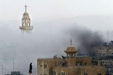 圖:以色列士兵與女友分別前相擁而吻 2002年04月03日 14:17 圖為色列士兵與女友相擁而吻 起火的教堂 在耶路撒冷市和西岸城市伯利恒之間地一處檢查站,一名以色列士兵與女友相擁而吻。以軍進(jìn)入了古城伯利恒,并向教堂開火,一名神父被殺,另外六名修女受傷。法新圖