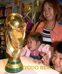 圖文:世界杯開幕準(zhǔn)備今天進(jìn)入最后50天倒計(jì)時(shí) 2002年04月11日 16:35 ![]() 世界杯開幕準(zhǔn)備進(jìn)入最后50天倒計(jì)時(shí),圖為見到大力神金杯后喜笑顏開的母子 共同社圖