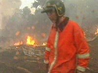 圖:中國(guó)國(guó)際航空公司客機(jī)失事現(xiàn)場(chǎng)的救援工作 2002年04月15日 19:42 ![]() 四月十五日上午十一時(shí)許,中國(guó)國(guó)際航空公司一架波音767客機(jī)在朝鮮釜山機(jī)場(chǎng)附近山上墜毀,救援人員在失事現(xiàn)場(chǎng)滅火救人。