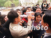 圖:在京媒體密切關(guān)注國(guó)航墜機(jī)事件 2002年04月15日 20:04 ![]() 15日,中國(guó)國(guó)航班機(jī)墜毀的消息傳出后,國(guó)航官員向守候在首都機(jī)場(chǎng)辦公樓外的各國(guó)媒體分發(fā)材料時(shí),被團(tuán)團(tuán)圍住。中新社記者 鄭萍萍 攝