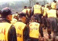 17日,在中國國航4·15墜機(jī)事件發(fā)生兩天后,韓國釜山當(dāng)?shù)卣越M織大批救援人員在失事現(xiàn)場(chǎng)進(jìn)行搜救工作,但大雨后泥濘的山地給搜索帶來很大的困難。
