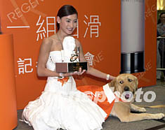 圖:張柏芝與“拍擋”一同出席Regene記者會 2002年04月26日 19:21 ![]() 歌星張柏芝26日在香港出席護(hù)膚品牌Regene記者會,張柏芝聯(lián)同人見人愛代言動物Healthy和大家見面,并展示Regene為她特制的頭像。中新社傳真 鄧慶樂 攝