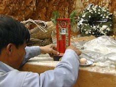 ![]() 在耶路撒冷爆炸中喪生的中國工人蔡獻(xiàn)陽和林春美的遺體25日晚運(yùn)抵福建莆田死難者所在的村子,并分別于26日上午8時和下午1時在家人和親友的安排下各自舉行了遺體的安葬儀式。