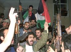 圖文:以軍撤離 阿拉法特首次公開露面(大事回放) 2002年05月02日 09:08 ![]() ![]() ![]() (法新圖) 中新網北京5月2日消息:在以色列完成從其在安姆安拉的總部撤軍后,阿拉法特星期四首次公開露面,但是仍然顯得非常憤怒,并斥責以軍為“恐怖分子” 在以軍撤出后不久,記者被允許進入阿拉法特的官邸內。數十名巴勒斯坦安全人員揮舞著槍支,鼓掌歡呼。還有人作出勝利的“V”字形手勢,也有人互相擁抱慶祝。 但是阿拉法特的情緒仍然非常憤怒。他在以色列撤軍后的首次談話中說:“我發(fā)生什么事并不重要,重要的是發(fā)生在圣誕教堂的事情,這是一種犯罪! 阿拉法特大聲地說道:“這對于巴勒斯坦人,對于阿拉法特,對于穆斯林,對于基督徒,對于聯合國,對于美國和俄羅斯來說,都是不可接受的! 阿拉法特稱以軍士兵為“恐怖分子、納粹和種族主義者”他顯得非常疲憊,在長達一個月的圍困中消瘦了不少,但是他針對以色列發(fā)表的演說比往常更激烈。 附:巴勒斯坦民族權力機構主席阿拉法特被圍困大事記 2001年 2001年12月3日:以色列空軍空襲阿拉法特在加沙的官邸。次日,以政府宣布巴勒斯坦民族權力機構為“支持恐怖主義的實體”。同時,以軍轟炸阿拉法特的專用直升機,破壞加沙國際機場,轟炸拉姆安拉阿拉法特官邸。受以軍圍困的阿拉法特留在拉姆安拉的官邸。 12月13日:以色列安全內閣召開緊急會議,決定斷絕同阿拉法特的聯系,稱阿拉法特不再同以色列有任何關系。 12月24日:以政府禁止阿拉法特前往伯利恒參加圣誕彌撒。 2002年 2月24日-28日:歐盟負責外交與安全政策的高級代表索拉納出訪中東,進行新一輪拯救中東和平的外交努力。 3月13日:聯合國安理會通過決議,首次表示支持建立巴勒斯坦國的“遠見”,敦促巴以沖突雙方積極配合國際社會的調解努力,立即停止一切暴力沖突,恢復和談。 3月27日:在阿拉法特缺席的貝魯特第14次阿拉伯國家首腦會議上,沙特阿拉伯王儲阿卜杜拉正式提出中東和平新建議,供大會審議通過。 3月29日:以政府以境內不斷發(fā)生自殺性爆炸為由,宣布阿拉法特為“敵人”。以軍大舉入侵約旦河西岸城市拉姆安拉,并攻入了阿拉法特官邸。同日,以軍發(fā)動“防衛(wèi)墻軍事行動”,對杰寧市及杰寧難民營發(fā)動大規(guī)模軍事襲擊。到4月19日,杰寧難民營始終處于以軍的重兵占領之下。巴方指責以軍在杰寧難民營的軍事行動中至少殺死了500人,使難民營中8000多名巴難民無家可歸。巴方要求聯合國派出調查組進行調查。 3月30日:聯合國安理會通過1402號決議,呼吁中東沖突雙方立即實現;,要求以色列從包括巴勒斯坦城市拉姆安拉在內的被占領土撤軍。 4月1日:以軍隊對約旦河西岸巴控制區(qū)再次發(fā)動大規(guī)模軍事進攻,并圍困了在拉姆安拉的阿拉法特總統府,以巴緊張局勢不斷升級。 4月5日:美國中東特使津尼在拉姆安拉同阿拉法特舉行會晤。 4月15日:以軍在拉姆安拉逮捕巴勒斯坦民族解放運動(法塔赫)在約旦河西岸的總書記巴爾古提。以方指控他是針對以色列的自殺爆炸和襲擊事件的主要組織者。 4月17日:美國國務卿鮑威爾結束在中東地區(qū)的穿梭訪問。為期10天的斡旋中,他三會以色列總理沙龍,兩晤巴勒斯坦領導人阿拉法特,終究沒有說服雙方達成一個;饏f議。 4月19日:聯合國安理會通過第1405號決議,授權成立杰寧調查組,負責對以軍進攻難民營時殺害巴平民的事實真相進行調查。但以色列方面則多次以調查組人員構成不合理為由拒絕該小組進入約旦河西岸。聯合國調查組滯留日內瓦。 4月28日:以同意接受美國總統布什提出的旨在結束對巴領導人阿拉法特圍困的新建議。 4月29日:以色列和巴勒斯坦雙方證實,3月29日以來一直被圍困在拉姆安拉官邸的巴勒斯坦民族權力機構主席阿拉法特從當天起重獲自由。 5月2日:在以色列完成從其在安姆安拉的總部撤軍后,阿拉法特首次公開露面,但仍憤怒地斥責以軍為“恐怖分子”。