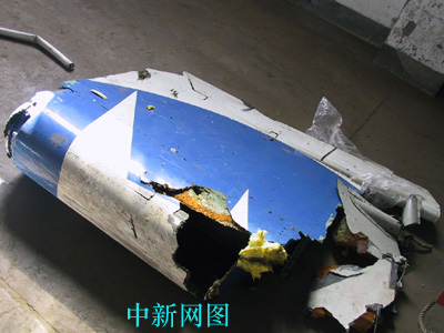![]() 事故現(xiàn)場打撈上來的飛機殘骸