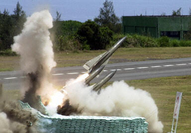 多圖:臺軍進行"神箭"演習(xí) 首次炫耀天弓2型導(dǎo)彈 2002年05月10日 11:56 臺軍的美制鷹式導(dǎo)彈(法新圖) ![]() “天弓”二型導(dǎo)彈(法新圖) ![]() 臺軍的“天弓”一型導(dǎo)彈(資料) 中新網(wǎng)香港5月10日消息:臺北訊,臺軍配合其“漢光18號”年度軍演而實施的“神箭43號”操演,今天上午在位于屏東的九鵬基地登場。 今天上午的操演以解放軍戰(zhàn)機襲擊臺灣東部為假設(shè)狀況,進行“天弓”導(dǎo)彈和美制鷹式導(dǎo)彈空中攔截的實彈射擊。其中的“天弓”二型導(dǎo)彈據(jù)稱是臺軍自行研發(fā)部署以來首次公開展示。 島內(nèi)媒體稱,演習(xí)中先后進行鷹式導(dǎo)彈的“單系統(tǒng)、單目標(biāo)接戰(zhàn)”和“天弓”導(dǎo)彈及鷹式導(dǎo)彈的“雙系統(tǒng)、多目標(biāo)接戰(zhàn)”課目驗證。一枚“天弓“導(dǎo)彈和三枚鷹式導(dǎo)彈全部命中35公里外的標(biāo)靶。 據(jù)“中央社”報道,“神箭43號”操演是臺灣陸軍年度例行性的防空導(dǎo)彈射擊訓(xùn)練,由陸軍導(dǎo)彈指揮部執(zhí)行。 臺軍從4月展開其“漢光18號”演習(xí),其中納入年度“神箭”、“神弓”等防空導(dǎo)彈實彈射擊與“聯(lián)興”兩棲登陸、“聯(lián)云”空降操演及后備動員演習(xí)。 據(jù)悉,臺軍的“天弓”一型導(dǎo)彈基本參數(shù)為: 彈長:5.498米。彈徑:0.4米。翼展:0.92米。發(fā)動機段:3.192米。藥柱:445公斤。導(dǎo)引方式:半主動雷達或被動式紅外線導(dǎo)引。飛行速度:3.7馬赫。射程:100公里。重量:870公斤。 “天弓”二型導(dǎo)彈基本參數(shù)為: 彈長:5.678米。彈徑:0.4米。翼展:0.92米。發(fā)動機段:3.624米。藥柱:612公斤。導(dǎo)引方式:主動雷達導(dǎo)引。飛行速度:4.3馬赫。射程:200公里。重量:1135公斤。