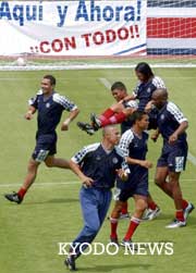 哥斯達(dá)黎加隊(duì)在日本鈴鹿市進(jìn)行首次訓(xùn)練(圖) 2002年05月15日 14:42 ![]() 哥斯達(dá)黎加國(guó)腳們進(jìn)入集訓(xùn)地后立刻開(kāi)始訓(xùn)練(14日上午攝于三重縣鈴鹿市的運(yùn)動(dòng)場(chǎng)=共同社) 中新網(wǎng)北京5月15日消息:世界杯參賽國(guó)——哥斯達(dá)黎加國(guó)家隊(duì)14日在三重縣鈴鹿市的運(yùn)動(dòng)場(chǎng)內(nèi)進(jìn)行了首次訓(xùn)練,開(kāi)始了備戰(zhàn)世界杯正式比賽的調(diào)整訓(xùn)練。 據(jù)“共同社”報(bào)道,哥斯達(dá)黎加隊(duì)作為首支到達(dá)日本的世界杯參賽國(guó)于13日晚上到達(dá)鈴鹿市。在主教練吉馬雷斯的指揮下,23名球員在用球訓(xùn)練中進(jìn)行了小比賽等,大聲呼喊汗流浹背。右膝傷病令人擔(dān)心的主力前鋒萬(wàn)喬普也展示了輕快的動(dòng)作。 吉馬雷斯主教練表示“訓(xùn)練環(huán)境非常好。我們的目標(biāo)是在世界杯中盡可能走得遠(yuǎn)一點(diǎn)?傊椭袊(guó)隊(duì)進(jìn)行的首場(chǎng)比賽非常重要!备缢惯_(dá)黎加隊(duì)將在鈴鹿市集訓(xùn)到23日。