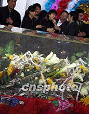 ![]() 十六日,人們沉痛地懷抱鮮花聚集大連殯儀館,向“5·7”空難中逝去的親人好友作最后告別。王麗南 攝