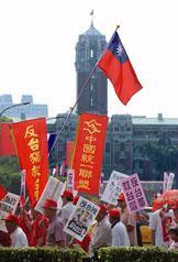 臺北"反臺獨(dú)救臺灣"大游行吁當(dāng)局放棄"臺獨(dú)"黨綱 2002年05月19日 16:30 ![]() 臺灣中國統(tǒng)一聯(lián)盟5月19日發(fā)起“反臺獨(dú)、救臺灣”萬人大游行。民眾以醒目標(biāo)語及旗幟,表達(dá)支持一個(gè)中國、反對“臺獨(dú)”的立場。(“中央社”圖) ![]() 臺灣中國統(tǒng)一聯(lián)盟5月19日發(fā)起“反臺獨(dú)、救臺灣”萬人大游行,在“美國在臺協(xié)會(huì)”門前,由一名面戴面具、扮作美國總統(tǒng)布什的男子跪地磕頭,就美國干涉臺海事務(wù)向臺灣民眾道歉。(“中央社”圖) 中新社香港五月十九日電 臺北消息:中國統(tǒng)一聯(lián)盟今天發(fā)起“五一九反臺獨(dú)、救臺灣大游行”,數(shù)千臺灣民眾身穿“One China”的紅上衣及紅帽子,高呼“反臺獨(dú)、救臺灣”,以表達(dá)他們支持一個(gè)中國、反對臺獨(dú)的立場。 據(jù)“中央社”報(bào)導(dǎo),游行隊(duì)伍于下午在臺北“中正紀(jì)念堂”出發(fā),民眾在經(jīng)過美國在臺協(xié)會(huì)時(shí)高呼“ROT(臺灣共和國),爛!爛!爛!One China,贊!贊!贊!”的口號,部分情緒激動(dòng)的民眾并向美國在臺協(xié)會(huì)投擲雞蛋。 游行活動(dòng)總領(lǐng)隊(duì)、中國統(tǒng)一聯(lián)盟主席王津平,日前在獨(dú)派人士的“臺灣正名”游行活動(dòng)中遭到攻擊而受傷,今天他在游行前發(fā)表演講,抨擊臺灣當(dāng)局兩年來,在民進(jìn)黨臺獨(dú)黨綱箝制下,導(dǎo)致兩岸關(guān)系緊張、經(jīng)濟(jì)嚴(yán)重衰退、社會(huì)混亂不安。 王津平說,今天“反臺獨(dú)、救臺灣”大游行的主要訴求,就是呼吁當(dāng)局撤除臺獨(dú)黨綱,遵守“一個(gè)中國”,回歸“九二共識”。 中新網(wǎng)香港5月19日消息:臺北訊,臺灣中國統(tǒng)一聯(lián)盟今天號召發(fā)起數(shù)十個(gè)島內(nèi)“在野”政黨次級團(tuán)體、反“臺獨(dú)”的民眾、車隊(duì)共同參與的“519反‘臺獨(dú)’、救臺灣萬人大游行”。 此次大游行由中國統(tǒng)一聯(lián)盟主席王津平擔(dān)任總領(lǐng)隊(duì)。日前為反制“臺獨(dú)”集團(tuán)的所謂“臺灣‘正名’游行”而遭暴力攻擊并受傷的王津平,在游行出發(fā)前發(fā)表演說指出,陳水扁上臺兩年以來,都因?yàn)椤芭_獨(dú)”黨綱箝制當(dāng)局政策發(fā)展,導(dǎo)致兩岸關(guān)系緊張、島內(nèi)嚴(yán)重經(jīng)濟(jì)衰退、社會(huì)混亂。 此次游行的主要訴求,就是呼吁陳水扁當(dāng)局及民進(jìn)黨撤除“臺獨(dú)”黨綱,遵守“一中原則”,回歸“九二共識”,以正式渠道恢復(fù)兩岸談判;立即三通,加速經(jīng)濟(jì)互補(bǔ)互利。 此外,游行隊(duì)伍向當(dāng)局喊出“反軍購、要福利”、“要顧三通,不要神盾”等口號。 據(jù)悉,游行隊(duì)伍也以踐踏美國國旗的方式,表達(dá)對美國介入臺海事務(wù)的強(qiáng)烈不滿。 另外,中國統(tǒng)一聯(lián)盟今晚將在舉辦“中國人團(tuán)結(jié)之夜”音樂會(huì),呼應(yīng)白天的游行主題。 相關(guān)報(bào)道:臺灣中國統(tǒng)一聯(lián)盟控告李登輝及"臺獨(dú)"分子施暴 相關(guān)報(bào)道:董建華會(huì)見臺灣"中國統(tǒng)一聯(lián)盟一國兩制參訪團(tuán)" 相關(guān)報(bào)道:臺灣中國統(tǒng)一聯(lián)盟訪港考察"一國兩制"實(shí)施情況 相關(guān)報(bào)道:臺灣中國統(tǒng)一聯(lián)盟抗議海外"臺獨(dú)"組織在臺興風(fēng)作浪 相關(guān)報(bào)道:臺灣“中國統(tǒng)一聯(lián)盟”抗議日相參拜靖國神社 相關(guān)報(bào)道:臺灣中國統(tǒng)一聯(lián)盟等十多個(gè)團(tuán)體抗議達(dá)賴訪臺 相關(guān)報(bào)道:臺灣中國統(tǒng)一聯(lián)盟座談會(huì)指臺灣沒理由抗拒“一國兩制”