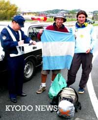 中新網(wǎng)北京5月22日消息:20日,在阿根廷國家隊進(jìn)行集訓(xùn)的J-VILLAGE(福島縣楢葉廣野兩町)附近,2名身著阿根廷隊服參觀集訓(xùn)地的熱心阿根廷男性球迷被當(dāng)?shù)鼐用癞?dāng)成“可疑人士”報警,造成巡邏車等4輛警車奔馳而來,8名警察圍著他們盤問的“盛況”。 據(jù)“共同社”報道,對于過度的警惕態(tài)度,這2名球迷不滿地表示:“我們看起來象足球流氓嗎?明明在成田機場認(rèn)真接受了入境審查!甭牭健耙驗榈谝淮斡型鈬蛎詠怼钡慕忉尯,2名球迷露出理解的表情。 18日到達(dá)日本的這2名球迷都是26歲,據(jù)說去年豐田杯時也來為博卡青年隊助威,都是鐵桿球迷。據(jù)說還有認(rèn)識的記者,來參觀J-VILLAGE附近的新聞中心。 但是,這2名球迷都沒有比賽門票,攜帶著睡袋,因此被懷疑“可能打算露宿”。警察確認(rèn)了2人攜帶的錢款以及住宿地,甚至還復(fù)制了護(hù)照。 這2名球迷聽說“J-VILLAGE禁止擅自入內(nèi)”后不禁垂頭喪氣。 但是,警察提出“經(jīng)過J-VILLAGE旁邊送你們到車站”后,他們又恢復(fù)精神乘上警車離去。