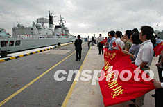 中新社北京五月二十三日電新加坡消息:今日上午十點(diǎn),美麗的“花園島國(guó)”新加坡,披上節(jié)日盛裝,迎來(lái)了中國(guó)人民海軍第一支艦艇編隊(duì)——環(huán)球航行訪問艦艇編隊(duì)。 新加坡海軍在樟宜港為中國(guó)艦艇編隊(duì)的到來(lái)舉行了隆重?zé)崃业臍g迎儀式,新加坡海軍艦隊(duì)副司令陳凱賀(TAN KAI HOE)上校和中國(guó)駐新大使張九桓、中資機(jī)構(gòu)、留學(xué)生及新各界人士到碼頭迎接。歡迎人群中拉起了“熱烈歡迎中國(guó)海軍艦艇編隊(duì)訪問新加坡”的巨幅標(biāo)語(yǔ),上百面中國(guó)國(guó)旗在歡迎人群中揮舞成一片;中國(guó)使館女青年向總指揮丁一平獻(xiàn)花,陳凱賀上校致歡迎詞,丁一平將軍作了簡(jiǎn)短講話并與張九恒大使、陳凱賀上校共同接受了記者的采訪。 丁一平將軍在接受記者采訪時(shí)說,這是中國(guó)海軍艦艇編隊(duì)首次訪問新加坡,作為中國(guó)人民和中國(guó)軍隊(duì)的友好使者,我們五百零六名官兵都感到非常高興。這次訪問,對(duì)加深兩國(guó)人民和軍隊(duì)之間的相互了解、增加信任、擴(kuò)大交流,發(fā)展友誼,進(jìn)一步促進(jìn)兩國(guó)人民、軍隊(duì)、特別是促進(jìn)兩國(guó)海軍關(guān)系的發(fā)展,有著非常重要的意義。訪問期間,我們的官兵將親身感受新加坡人民和軍隊(duì)的友好情誼,同樣,新加坡人民和軍隊(duì)也將通過中國(guó)海軍,更多地了解到中國(guó)人民和中國(guó)軍隊(duì)。 新海軍艦隊(duì)副司令陳凱賀告訴記者,新海軍十分重視中新兩國(guó)海軍關(guān)系的發(fā)展,新海軍先后于九八、九九年分別派艦對(duì)上海和青島進(jìn)行了友好訪問。這次中國(guó)海軍艦艇編隊(duì)來(lái)新加坡訪問,是我們期待已久的事,我們?yōu)橹袊?guó)海軍的來(lái)訪,精心安排了多方面的活動(dòng)。 據(jù)記者了解,訪問樟宜港,是中國(guó)海軍艦艇編隊(duì)此次環(huán)球航行訪問的第一站。該港位于新加坡北部,是新海軍最大的基地和海軍司令部所在地,港內(nèi)可?堪ê娇漳概炘趦(nèi)的多種艦船。中國(guó)艦艇編隊(duì)將在此訪問三天,訪問其間,相繼到港的還有泰國(guó)、德國(guó)軍艦。 歡迎儀式結(jié)束后,編隊(duì)總指揮丁一平在張九恒大使陪同下前往新國(guó)防部拜會(huì)了新海軍總長(zhǎng)(司令)呂德耀少將。參加歡迎儀式的中國(guó)駐新使館人員、華人華僑及留學(xué)生代表百余人登艦參觀,并與官兵們進(jìn)行了親切交談。 當(dāng)日下午,出訪官兵參觀了新海軍基地設(shè)施和戰(zhàn)術(shù)訓(xùn)練中心、軍艦等。晚上,新海軍為中國(guó)艦艇編隊(duì)官兵舉行了歡迎宴會(huì),新海軍參謀長(zhǎng)戴榮利準(zhǔn)將等高級(jí)官員出席。(完)