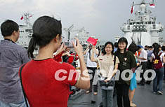 圖文:中國(guó)環(huán)球航行訪問艦艇編隊(duì)首訪新加坡 2002年05月23日 19:08 ![]() 二十三日上午,興致勃勃的中國(guó)留學(xué)生在新加坡樟宜港登上中國(guó)海軍首次環(huán)球航行訪問艦艇編隊(duì)的“青島號(hào)”艦艇,參觀和留影。中新社圖 躍勝岐 攝