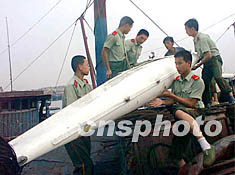 圖:泉州漁民撈獲大型飛機殘骸 2002年06月01日 20:15 ![]() 31日下午4時許,泉州石獅市“閩獅漁2292號”漁船將打撈到的一塊華航客機殘骸交給祥芝邊防派出所。這塊外表乳白色的飛機殘骸長4.2米,寬1.4米,約重一百斤,呈三角形狀。這塊殘骸是5月29日下午4時許,漁船在東經(jīng)119度39分、北緯24度28分海域生產(chǎn)作業(yè)時撿獲的。作者:徐承彬