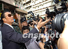 ![]() 香港藝人謝霆鋒涉妨礙司法公正一案,6月7在香港西區(qū)裁判署提堂,其父謝賢為謝霆鋒開(kāi)路。中新社圖 洪少葵 攝