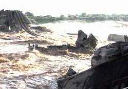 圖文:因洪水而中斷的隴海鐵路今晨恢復(fù)通車 2002年06月10日 14:06 ![]() 因洪水中斷的西安市隴海鐵路灞河大橋恢復(fù)通車 中新社西安六月十日電(張珂冽瑋)因山洪暴發(fā)而被沖垮的陜西省西安市隴海鐵路灞河大橋,已于今日凌晨零點五十五分恢復(fù)通車。有關(guān)人士稱,昨日滯留西安的近萬名旅客現(xiàn)已基本疏散。截至今天中午,已通過的雙向?qū)﹂_客車達到十五列。 據(jù)了解,灞河大橋位于隴海鐵路西安站以東,始建于一九三四年,因橋齡較長,橋基飽經(jīng)風(fēng)蝕雨刷。九日凌晨至下午的一場大暴雨之后,灞河洪水流量達到每秒六百立方米。四個橋墩被沖掉,五孔橋被沖垮,造成一百零五米長的一段鐵路橋完全垮塌斷裂,繁忙的隴海鐵路上下行一度中斷達八個多小時,幸無人員傷亡。 記者今天在現(xiàn)場采訪時看到,昔日干涸的灞河洶涌澎湃,渾黃的激流拍打著河岸,在河床上形成了落差不等的瀑布,氣勢壯觀。河岸上站滿了搶險人員,大型挖掘機、推土機等搶險設(shè)備源源不斷地開赴現(xiàn)場。大批警察疏導(dǎo)交通,維持秩序,協(xié)助搶險。 一位老大爺心有余悸地告訴記者,昨天下午三點半,一列開往安康的火車剛剛從距隴海線灞橋鐵路橋東側(cè)的西康鐵路橋開過,一聲巨響,灞橋鐵路橋第四號橋墩轟然倒塌了。 據(jù)西鐵分局副局長杜振才介紹,為了盡快恢復(fù)隴海線的通車,當?shù)罔F路部門臨時修建一條便線與隴海線毗鄰的西康鐵路新橋相連。今日零點五十五分,第一列旅客列車K一七三(青島至蘭州)順利通過灞河大橋。 杜振才副局長表示,目前仍在繼續(xù)加固西康線新橋,每小時通過火車數(shù)為三列,有部分列車臨時改行其它線路,昨晚繞行列車數(shù)為十一列。 據(jù)透露,中國鐵道部對此十分重視,一再敦促盡快落實灞河大橋修復(fù)方案。現(xiàn)投入的搶險人力達一千五百人左右,估計修復(fù)工作需耗時兩至三個月左右。(完) 中新網(wǎng)北京6月10日消息:6月9日下午,流經(jīng)西安市東郊的灞河水流猛漲,將隴海線西安灞橋段鐵路大橋沖垮,致使交通大動脈隴海鐵路線中斷。據(jù)中央電視臺報道,今天早上6時20分開始,隴海線受阻列車從坍塌鐵路大橋旁的西康鐵路橋通過,隴海鐵路已經(jīng)臨時恢復(fù)通車。 據(jù)報道,工程部門計劃近期在坍塌鐵路橋處搭一座軍便橋,并計劃重新設(shè)計修建坍塌的鐵路橋。 6月9日下午,灞河水波濤洶涌,出現(xiàn)近20年來最大洪水。15時30分左右,隴海線西安至臨潼間的368米長的灞橋鐵路橋第4號橋墩轟然倒塌,鐵路線攔腰垮塌陷入激流。至17時,隴海鐵路橋第5號、2號和1號橋墩相繼發(fā)生塌陷,造成約150米鐵路橋完全垮塌斷裂。 灞橋鐵路大橋被沖斷后,致使300多次列車滯留,隴海鐵路陷入癱瘓,滯留西安的旅客接近1萬人。 相關(guān)報道:隴海鐵路灞河大橋因洪水而中斷 客貨運輸受阻