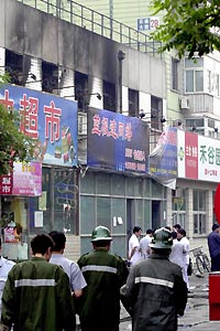 北京一網(wǎng)吧今晨發(fā)生火災(zāi)造成24死13人受傷(圖) 2002年06月16日 09:10 ![]() 目前起火原因正在調(diào)查之中。新華社記者 唐召明攝 中新網(wǎng)北京6月16日消息:據(jù)新華網(wǎng)報(bào)道,今天凌晨2時(shí)40分左右,北京海淀區(qū)學(xué)院路20號(hào)院內(nèi)的一家藍(lán)極速網(wǎng)吧發(fā)生火災(zāi)。經(jīng)公安消防部門現(xiàn)場(chǎng)勘察,火災(zāi)造成24人死亡,13人受傷。 接報(bào)后,北京公安消防部門迅速趕到現(xiàn)場(chǎng)。3時(shí)30分,火被撲滅。記者在現(xiàn)場(chǎng)了解到,公安部、北京市領(lǐng)導(dǎo)在現(xiàn)場(chǎng)組織搶救;馂(zāi)原因正在調(diào)查中。(牛愛民、李煦)