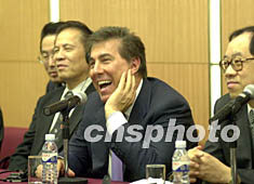 美國(guó)“賭王”史提芬·永利談與澳門特區(qū)政府簽約 2002年06月25日 08:32 ![]() 永利度假村(澳門)股份有限公司二十四日與澳門特區(qū)政府簽署娛樂場(chǎng)幸運(yùn)博彩經(jīng)營(yíng)批給合同簽字儀式后,永利負(fù)責(zé)人史提芬·永利在記者招待會(huì)上談笑風(fēng)生。李剛 攝