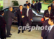 圖:董建華在禮賓府迎候江澤民主席 2002年06月30日 22:04 ![]() 六月三十日,香港特首董建華在香港特區(qū)政府禮賓府歡迎國(guó)家主席江澤民,圖為董建華與夫人在禮賓府迎候江澤民主席。潘索菲 攝