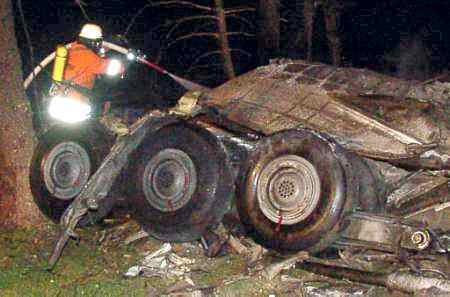 圖文:消防人員撲滅墜毀飛機上的火焰 2002年07月02日 14:33 ![]() 德國當(dāng)?shù)貢r間7月1日夜(北京時間2日晨),一架DHL公司的波音757貨機和俄羅斯圖-154客機在德國巴登-符騰堡州于伯林根鎮(zhèn)上空相撞并墜毀,至少已造成71人死亡。圖為一位消防人員7月2日在德國西南烏伯林根鎮(zhèn)一個住宅區(qū)附近撲滅了兩架墜毀飛機中一架其起落架上的火焰。(春風(fēng))