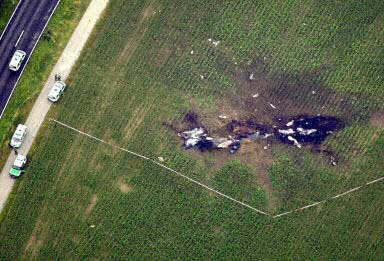圖文:俯瞰飛機(jī)殘骸 大片地面被燒焦 2002年07月02日 19:54 德國當(dāng)?shù)貢r(shí)間7月1日夜(北京時(shí)間2日晨),一架DHL公司的波音757貨機(jī)和俄羅斯巴什基爾航空公司的圖-154客機(jī)在德國巴登-符騰堡州于伯林根鎮(zhèn)上空相撞并墜毀,至少已造成71人死亡,其中包括52名兒童。圖為散落在地上的飛機(jī)殘骸,可見大片地面被燒焦。(春風(fēng))