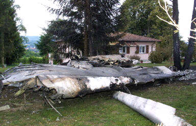 圖文:墜落在房屋附近的圖-154客機(jī)殘骸 2002年07月03日 14:38 德國(guó)當(dāng)?shù)貢r(shí)間7月1日夜(北京時(shí)間2日晨),一架DHL公司的波音757貨機(jī)和俄羅斯巴什基爾航空公司的圖-154客機(jī)在德國(guó)巴登-符騰堡州于伯林根鎮(zhèn)上空相撞并墜毀,至少已造成71人死亡,其中包括52名兒童。圖為墜落在一所房屋附近的圖-154客機(jī)殘骸。(春風(fēng))