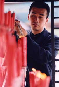 拍攝花絮:柳云龍靈山大佛前祈禱(多圖) 2002年07月11日 15:50 ![]() 現場圖片 ![]() 無錫有座靈山,靈山大佛為天下第一高立佛,高達88米。相傳佛陀涅槃后千年,玄奘大弟子窺基帶著佛祖遺物——菩提心燈至靈山傳法,遂神燈成為靈山鎮(zhèn)山之寶。因此緣,再四百年,佛祖百丈金身終現靈山山巔。我們的景就選在這個空靈而神奇的地方。 全組清早五時從駐地出發(fā),沐著淡淡的薄霧前行,偶爾有幾簇青蔥的仙人樹映入眼簾,樹上花紅似火。事先沒有任何預兆,天下突然起了大雨,我們是在雨中進入祥符寺的,鐘六一的重頭戲將在這里完成。由于雨太猛烈,劇組無法工作,所有的人在殿前靜靜地候著。香燭忽明忽暗,山門口的佛背身而立,呢喃的頌經聲遠遠傳來,青煙裊裊濾去塵世的躁動,勾勒歲月的嬗變。雨稍小了一點,劇組開始拍攝,柳云龍飾演的黑社會老大鐘六一是個身世復雜經歷奇異終日徘徊在矛盾與痛苦中的人物,當他曾經輝煌、磨難、罪惡直至眾叛親離的一生走到盡頭的時候,鐘六一孤獨地找尋寺廟,似乎這里有種力量在召喚著他。柳云龍換上一身墨色的行頭,支著黑傘,出現在鏡頭前,蒼白的臉頰裸露青茬,和著雨珠同冰冷。他徑直走入佛殿,跪拜佛前,將臉深埋蒲團,久久未起。因為雨的淅瀝,因為柳云龍的專注,大家一時竟分不出是戲里還是戲外。一名僧者掠過鐘六一,在他身邊低語了一番,鐘六一呆滯的雙眼突然跳動了一下,福田寬廣,也許這個或無情或深情的焦灼靈魂在此刻頓悟——往事隳飛煙滅,一切皆成夢魘。 大家渾身濕透,有雨水更有汗水。如果說影視是切換的張力的藝術,那么,跟隨角色的足跡,演員循著創(chuàng)作進程可以發(fā)掘存在的原本,表達的支點。進入拍攝后期的柳云龍極大地沉浸在人物的狀態(tài)里,桀驁不馴,獨來獨往,演員的幸福與痛苦于第一自我和第二自我的交替中穿插著,這是創(chuàng)造賦予創(chuàng)造者的生命。 柳云龍在鐘六一的起落中脫胎換骨,完成著作為演員的使命。