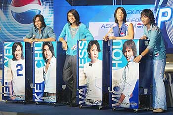 拍《流星花園》日久生情? F4言承旭傳鬧姐弟戀(圖) 2002年08月09日 09:21 ![]() F4言承旭(左1)被傳媒追問他與柴姐的緋聞,他拒絕回應(yīng)! 中新網(wǎng)香港8月8日消息:言承旭與《流星花園》監(jiān)制柴智屏鬧姐弟戀?言承旭被問起臉色一沉! 據(jù)此間新明日報的報道說,F(xiàn)4言承旭憑“道明寺”一角走紅東南亞,傳媒與歌迷對於他的感情生活非常有興趣,有傳言指他喜歡同性,也有傳他與《流星花園》制作人兼經(jīng)理人柴智屏正在鬧“姐弟戀”! 前晚他在香港出席百事的廣告首播記者會后,傳媒追問他與柴姐的緋聞,言承旭假裝聽不懂拒絕回應(yīng)! 他身旁的朱孝天則搞笑為他解圍,引來哄堂大笑!雖然F4都略懂廣東話,但記者訪問時多以華語發(fā)問,朱孝天就充當翻譯員。當記者問到言承旭與柴智屏的戀情時,他面色一沉,朱孝天也不肯翻譯,只是拍了一下他的膝蓋說:“我想,是時候我們公開了!” 言承旭不禁失笑又假裝聽不明白,并轉(zhuǎn)身向工作人員示意要求解圍,最后工作人員表示與廣告宣傳無關(guān),拒絕回應(yīng)。