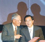 陳水扁與李登輝同臺(tái)現(xiàn)身 一唱一和鼓吹“臺(tái)獨(dú)” 2002年08月12日 09:49 ![]() 李登輝(左)與陳水扁交頭接耳(臺(tái)灣聯(lián)合報(bào)圖) 中新網(wǎng)香港8月12日消息:臺(tái)北訊,陳水扁與李登輝昨天先后在“臺(tái)獨(dú)”黨派“臺(tái)灣團(tuán)結(jié)聯(lián)盟”一周年“黨慶”活動(dòng)中放話(huà),再放“臺(tái)獨(dú)”厥詞,而且兩人致詞內(nèi)容明顯相互呼應(yīng)。 在“臺(tái)聯(lián)黨”的“特別安排”下,陳水扁與李登輝兩人繼陳氏拋出“一邊一國(guó)論”之后,首度公開(kāi)同臺(tái)亮相。 陳水扁在發(fā)言時(shí)未提所謂“一邊一國(guó)”論,但又抹黑中國(guó)大陸對(duì)臺(tái)灣“武力威脅”和“國(guó)際打壓”,并鼓動(dòng)說(shuō):“對(duì)的信念絕不放棄,對(duì)的路要繼續(xù)走! 陳水扁還用閩南語(yǔ)說(shuō),“不能被人唬得驚驚到”,要“歡喜看未來(lái)”。 李登輝隨后發(fā)言公開(kāi)支持陳水扁,聲稱(chēng)“百分之百”支持所謂“一邊一國(guó)”論,并指此論為“事實(shí)的表述”。這名“臺(tái)聯(lián)黨”的“精神導(dǎo)師”更鼓吹堅(jiān)持臺(tái)灣“主權(quán)獨(dú)立”,并指兩岸是“國(guó)與國(guó)的關(guān)系”。 李登輝呼應(yīng)陳水扁“不要被嚇倒”的說(shuō)法,對(duì)“臺(tái)獨(dú)”份子放話(huà)說(shuō)“免驚啦”,而且“不要被臺(tái)北‘外來(lái)政權(quán)’的大本營(yíng)與統(tǒng)派媒體嚇倒”。 島內(nèi)媒體報(bào)道指出,陳水扁與李登輝先后發(fā)言的內(nèi)容明顯相互呼應(yīng),陳水扁要“臺(tái)聯(lián)黨”在當(dāng)局“立法院”中力拼李登輝定的“指標(biāo)”說(shuō)35席,李登輝則說(shuō)“很不好意思,還差20多席”;陳水扁要大家不要被中國(guó)大陸“嚇倒”,李登輝則要大家“安心”。兩人不僅相偕進(jìn)場(chǎng),而且陳水扁在臺(tái)上講話(huà)時(shí),臺(tái)下的李登輝頻頻拍手。