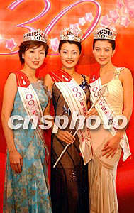 ![]() 二00二年度香港小姐競(jìng)選冠、亞、季軍,8月12日亮麗登場(chǎng)領(lǐng)獎(jiǎng)會(huì)見新聞界,(左起)季軍胡家惠、冠軍林敏俐、亞軍左慧琪。洪少葵 攝