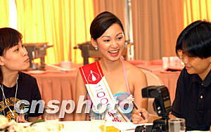 ![]() 參選香港小姐競(jìng)選的佳麗嘉碧儀,賽前連奪多個(gè)大獎(jiǎng)而在決賽晚卻大熱倒灶,三甲不入。12日仍然與傳媒談笑風(fēng)生。洪少葵 攝