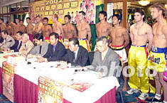 ![]() 2002世界泰拳金腰帶慈善大賽組委會(huì)十六日在澳門舉行新聞發(fā)布會(huì),參賽的二十名各國(guó)選手在會(huì)上亮相。據(jù)悉,本次大賽的所有收益將撥捐中國(guó)水災(zāi)地區(qū)、澳門同善堂、澳門紅十字會(huì)及澳門工會(huì)聯(lián)合會(huì)職工福利基金會(huì)。李剛 攝