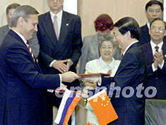 在雙方共同努力下,中俄貿(mào)易額連續(xù)三年保持了增長,二00一年達(dá)到一百零六點(diǎn)七億美元。二00二年上半年雙邊貿(mào)易額為五十四點(diǎn)五億美元,同比增長達(dá)百分之十八點(diǎn)七。