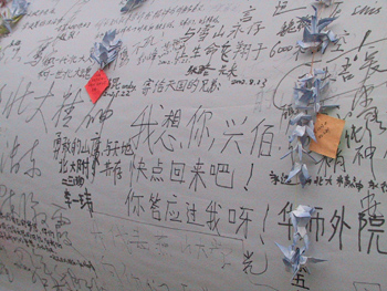 為了紀(jì)念這五位遇難同學(xué),北京大學(xué)還在百周年紀(jì)念講堂東廳設(shè)立了靈堂,北京大學(xué)黨委書記閔維方、校長(zhǎng)許智宏等人于今天下午四點(diǎn)前往哀悼。山鷹社平日訓(xùn)練的人工巖壁前也成了祭奠的場(chǎng)所,人們?cè)谀抢飻[放花束、花圈,寄托哀悼之情。