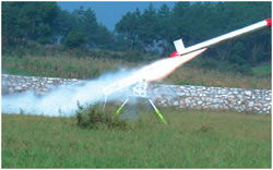 這時(shí),指揮所接到情報(bào),4批“敵”空中目標(biāo)來(lái)襲。指揮官一聲令下,部隊(duì)迅速進(jìn)入陣地嚴(yán)陣以待!皵场钡谝慌蔚1枚巡航導(dǎo)彈進(jìn)入,陣地上立即發(fā)射了紅外誘餌彈、箔條彈,只見空中綻開一大片如仙女散花般的紅色光亮火球,接著又是一聲炸響,一組金屬箔條干擾彈騰空而起,瞬間在150米的空中銀光閃爍,形成了一道綿密的金屬箔條網(wǎng),對(duì)導(dǎo)彈進(jìn)行干擾。幾名戰(zhàn)士肩扛的某型便攜式地空導(dǎo)彈隨即發(fā)射,導(dǎo)彈托著長(zhǎng)長(zhǎng)的尾焰直撲目標(biāo)而去。“敵”巡航導(dǎo)彈偏離了目標(biāo),在預(yù)先設(shè)置的假陣地中爆炸。