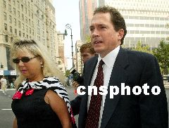 9月4日,世通公司前首席財(cái)務(wù)官斯克特·沙利文前往法庭應(yīng)訴。他被指控制造假帳,隱瞞了世通公司38億美元的虧空。Ic/cnsphoto 攝