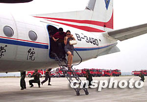 中新社綿陽九月十二日電(陳雯、于力)今天下午,四川綿陽市南郊機場舉行了自通航以來規(guī)模最大的一次反劫機應(yīng)急救援演練。當(dāng)?shù)毓簿止渤鰟咏瘑T、近百輛警車和特種車輛,集結(jié)了全部警種,針對航空器被劫持、涉爆及發(fā)生火災(zāi)的情況進行了全過程、全方位的戰(zhàn)斗部署和救援演練。