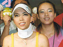 按照醫(yī)生的囑咐,為了配合片刻不離身的護(hù)頸作造型,愛美的阿妹連夜叫助理買來同色系的白色鴨舌帽,即刻請人繡上A MEI英文字樣,自己再貼上水鉆。只是阿妹表示因臨時(shí)起意所以尚未完工,她甚至開玩笑,演唱會(huì)時(shí)若還須戴護(hù)頸上臺,她一定會(huì)將護(hù)頸精心設(shè)計(jì),當(dāng)成裝飾品,像貼滿水晶或是火辣豹紋造型,讓大家驚艷。
