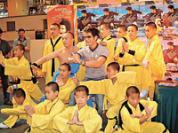 原來這班少林子弟為馬來西亞的佛學(xué)會表演人員﹐得知城城舉行簽名會﹐連早餐也不吃趕來等城城出現(xiàn)﹐終得償所愿。他們當(dāng)中﹐最年少的只有四歲﹐所以一睹偶像風(fēng)采后﹐還天真爛漫地與城城一起擺pose合照﹐場面極之可愛。城城說﹕“萬料不到有緣會在這里遇上少林子弟﹐得以合照更是一種緣份!庇捎诔浅且s往機場返港﹐在時間緊迫下﹐擠滿近千人的商場﹐只有五百人獲得簽名。