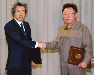 中新網(wǎng)9月17日電朝鮮國(guó)防委員會(huì)委員長(zhǎng)金正日和日本首相小泉純一郎17日下午結(jié)束首腦會(huì)談,在平壤白花園迎賓館簽署了《朝日平壤宣言》。