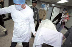 20日零時35分,高楓的父母在別人的攙扶下離開病房,表情十分凝重。20日1時4分,高楓遺體從病房中推出,送至太平間區(qū)的告別室。(張學(xué)軍、翟佳)