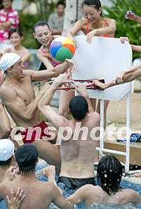 新絲路中國模特大賽選手二十日在三亞進(jìn)行包括游泳、乒乓球、水球等體育技能比賽,展示T型臺(tái)下的風(fēng)采。作者:毛建軍