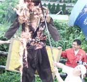 臺(tái)灣愛國(guó)同心會(huì)等團(tuán)體成員上午在“立法院”門外,以鞭打畫著李登輝臉譜人偶等方式,表達(dá)對(duì)李登輝的不滿。他們要求李登輝必須為自己的“賣國(guó)”言行道歉,否則他們將效法當(dāng)初向李登輝潑紅墨水的史力行,“李登輝走到哪里,就跟到哪里”。