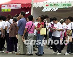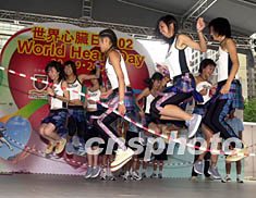 香港娛樂圈眾星9月29日在香港“世界心臟日2002”活動(dòng)中呼吁市民利用健身強(qiáng)健心臟。中新社圖 任晨鳴 攝