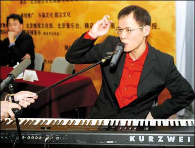 除了能唱,能說也是羅大佑近期的一大特色,在演出、參加節(jié)目等許多場合他都是這么表現(xiàn)的,昨天依然如是,話筒一到手里他就開始了一段二三十分鐘的長談,談他到北京以后對這里的好感,談北京的天氣與音樂的關(guān)系,之后每次回答記者提問也都是洋洋灑灑的感覺。