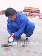 近日來,邊清理邊增加的天安門廣場口香糖污染問題引起媒體關(guān)注。短短幾天時(shí)間內(nèi),廣場上就產(chǎn)生了60多萬塊口香糖垃圾。有的地方不到一平方米的地面竟然有9塊口香糖污漬。神圣和莊嚴(yán)的天安門廣場竟布滿密密麻麻的口香糖斑痕。