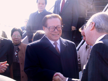 組圖:江澤民主席飛抵芝加哥開始訪問美國(guó)