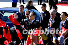 江澤民主席應(yīng)布什總統(tǒng)邀請?jiān)L問美國,二十二日抵達(dá)芝加哥奧黑爾機(jī)場,向前來迎接的各界人士揮手致意。作者:王瑤
